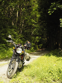 これは思ったより大変だぞ〜と思っていたところで、休憩中のライダーさんと遭遇。バイクはセローとトリッカー。普通はそうだよね…。